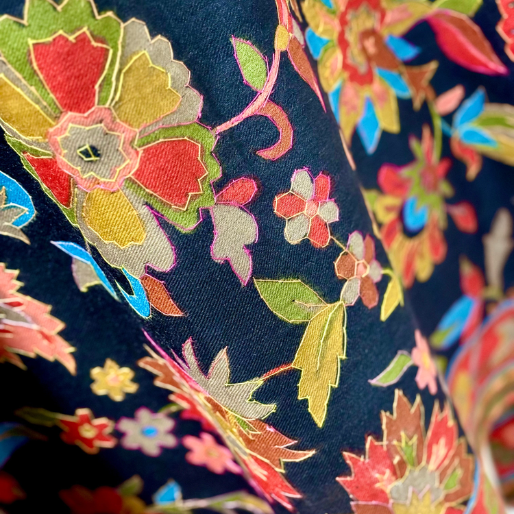 Luna Kalamkaari Multi Color Print on Black Shawl
