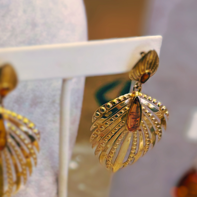 Two Tone Baltic Amber Petal Earrings