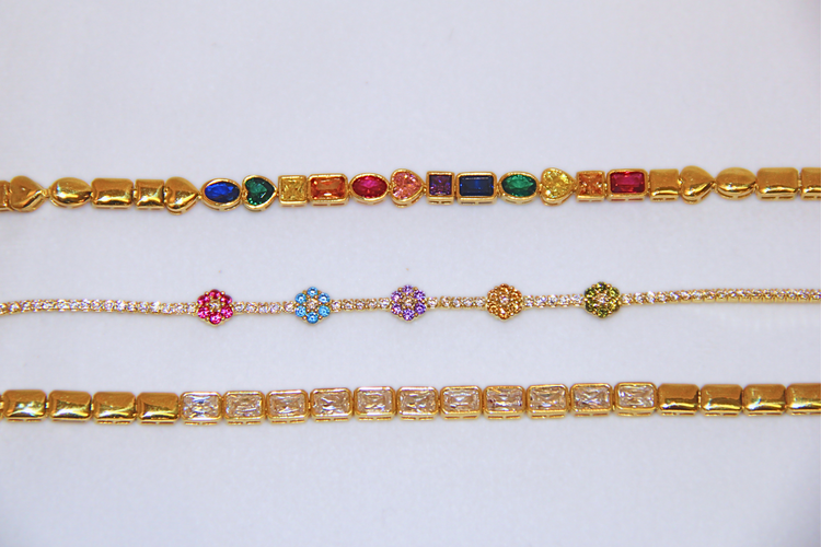 Multi Color CZ Sterling Silver Gold Plated Bracelet
