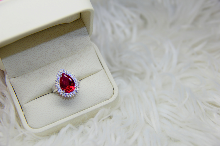 Red and Clear Cubic Zirconia Sterling Silver Ring