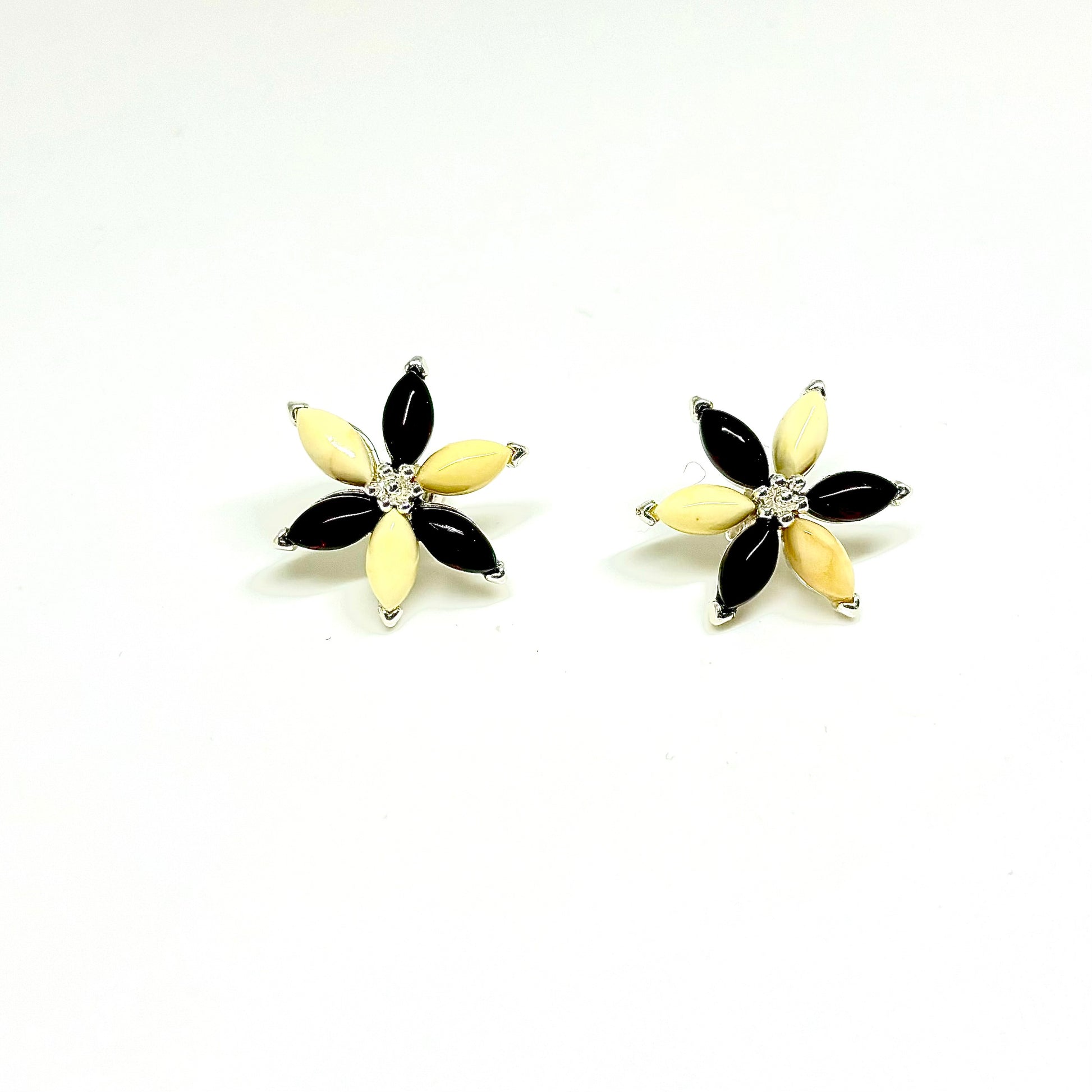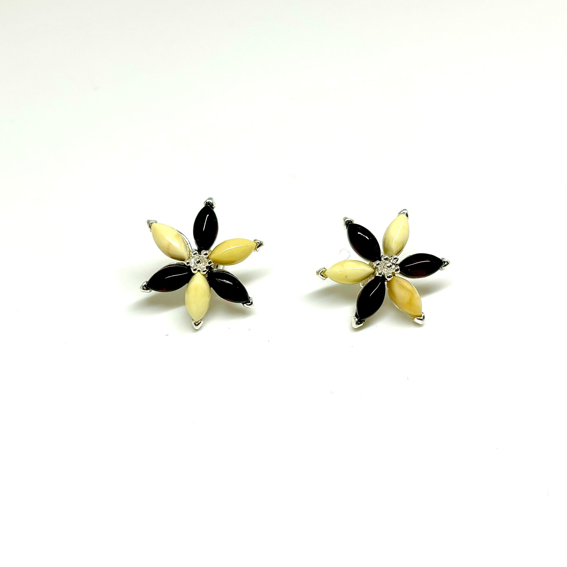 Cherry and Milky Baltic Amber Flower Stud Earrings