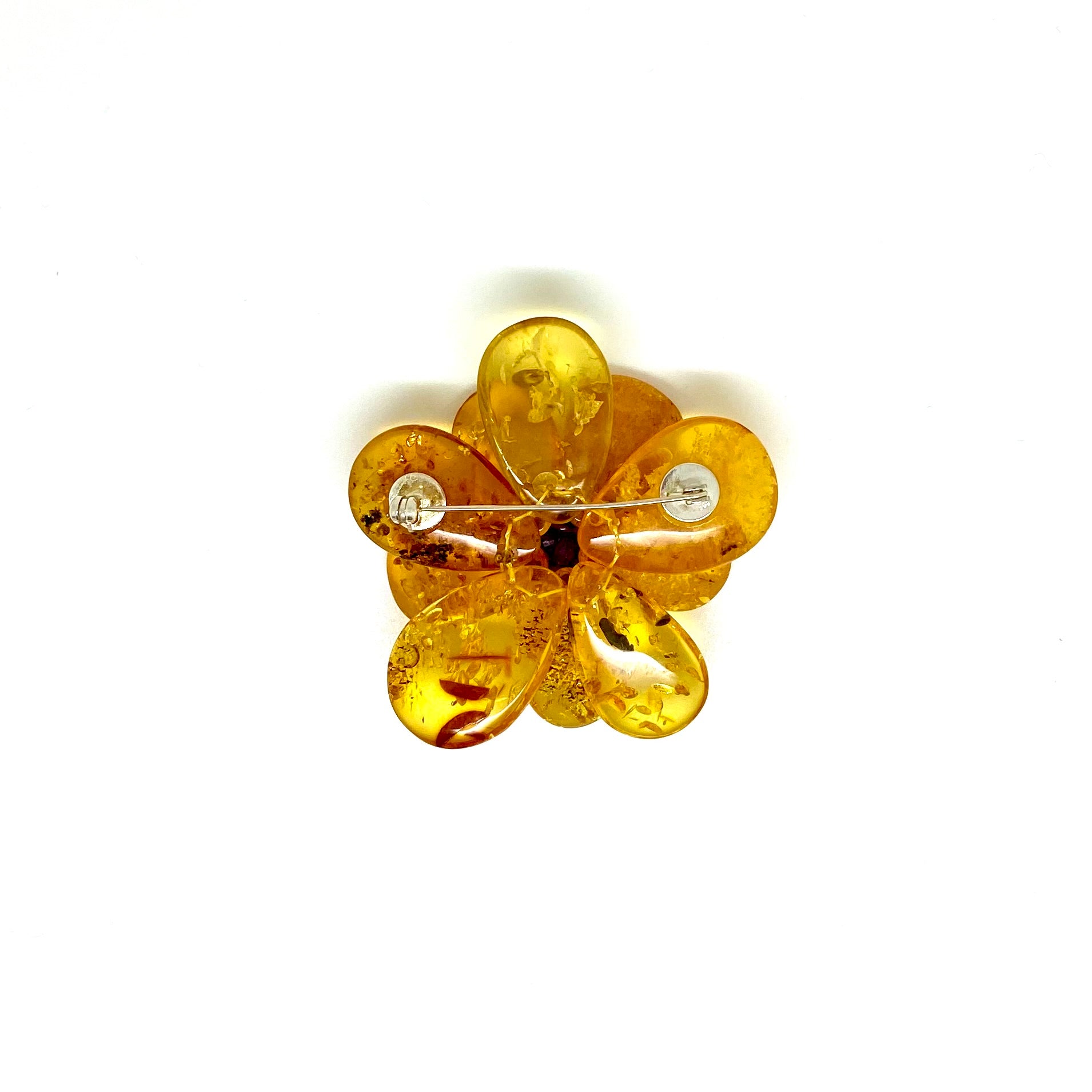 Honey Color Baltic Amber Handmade One of a Kind Flower Pin