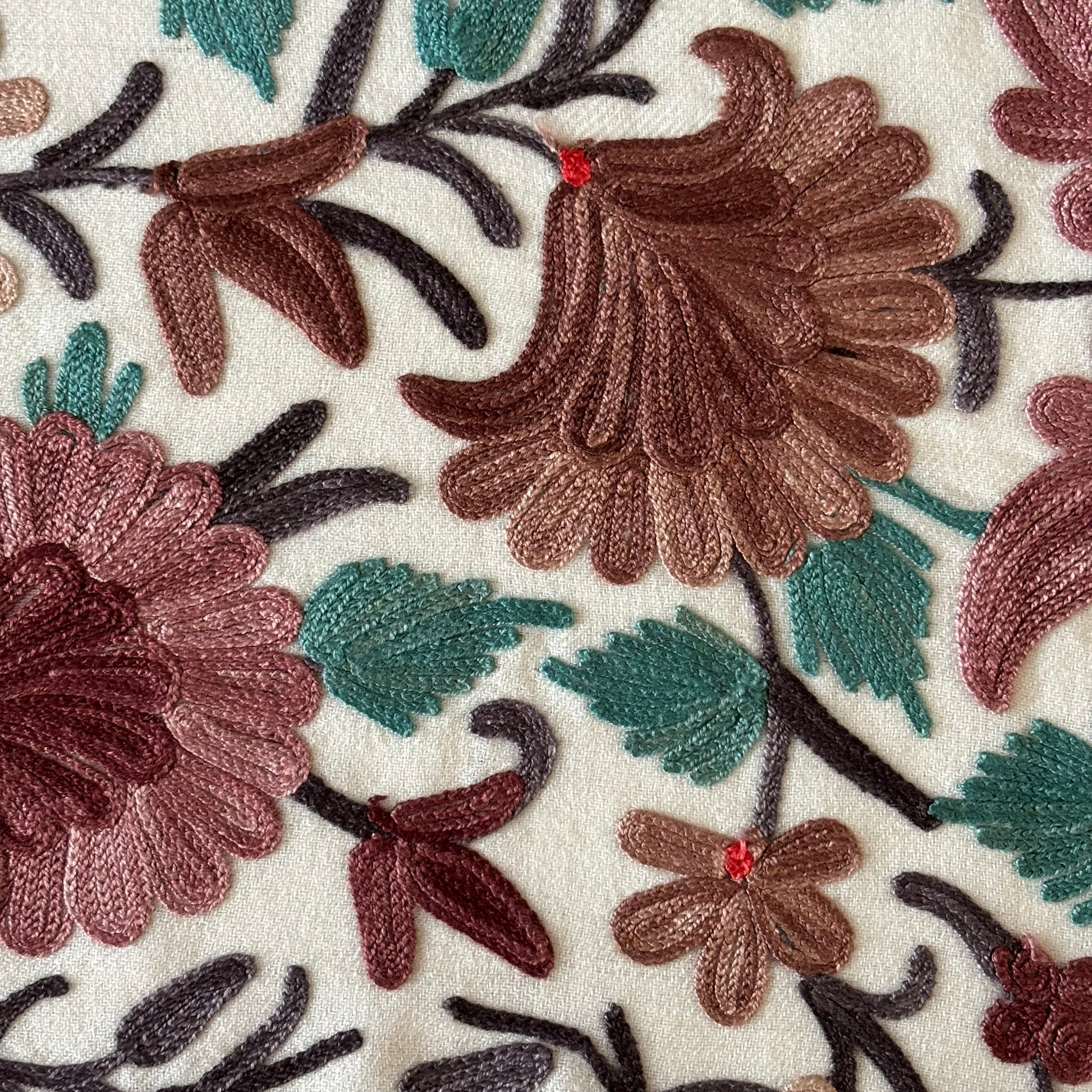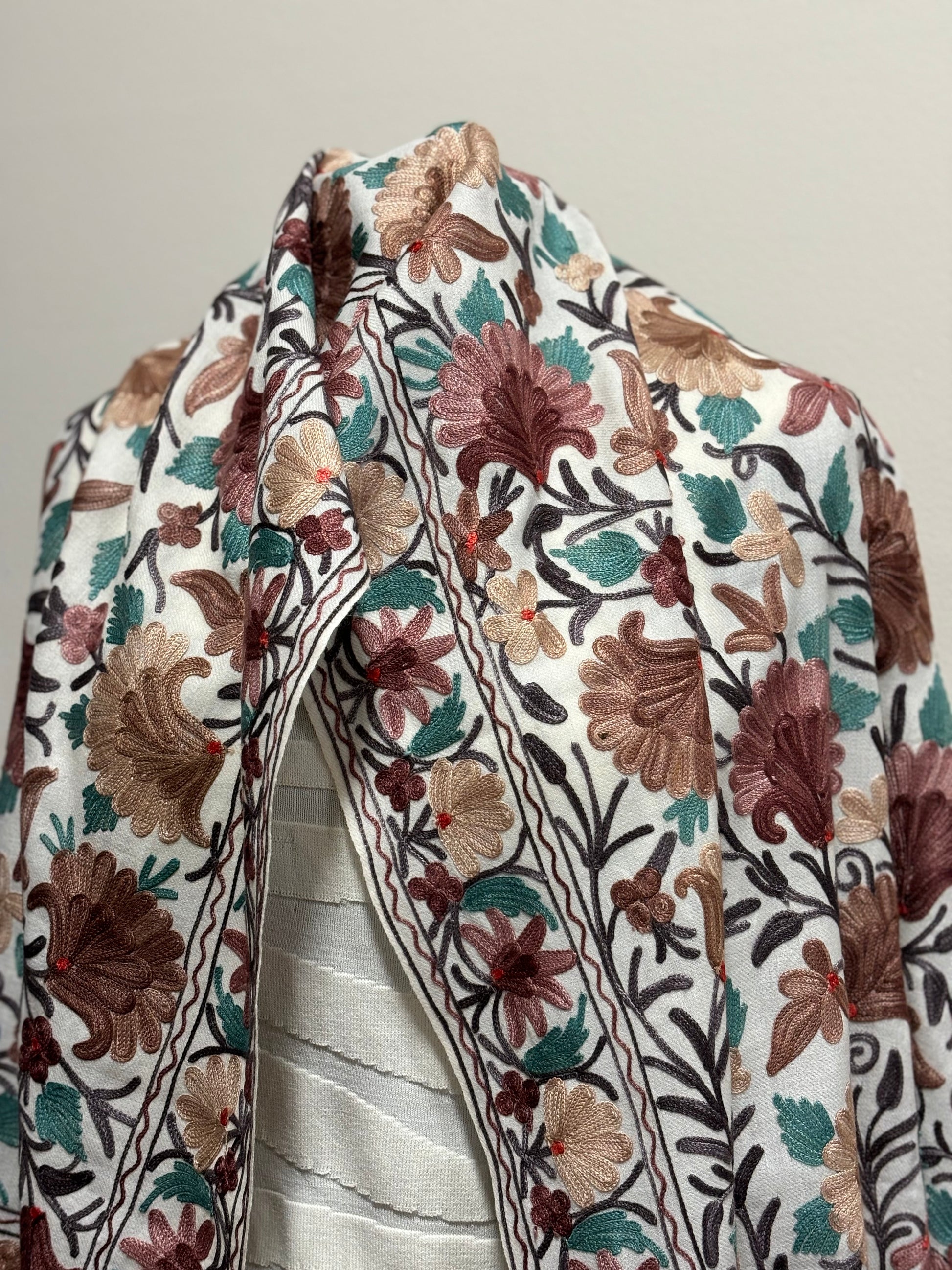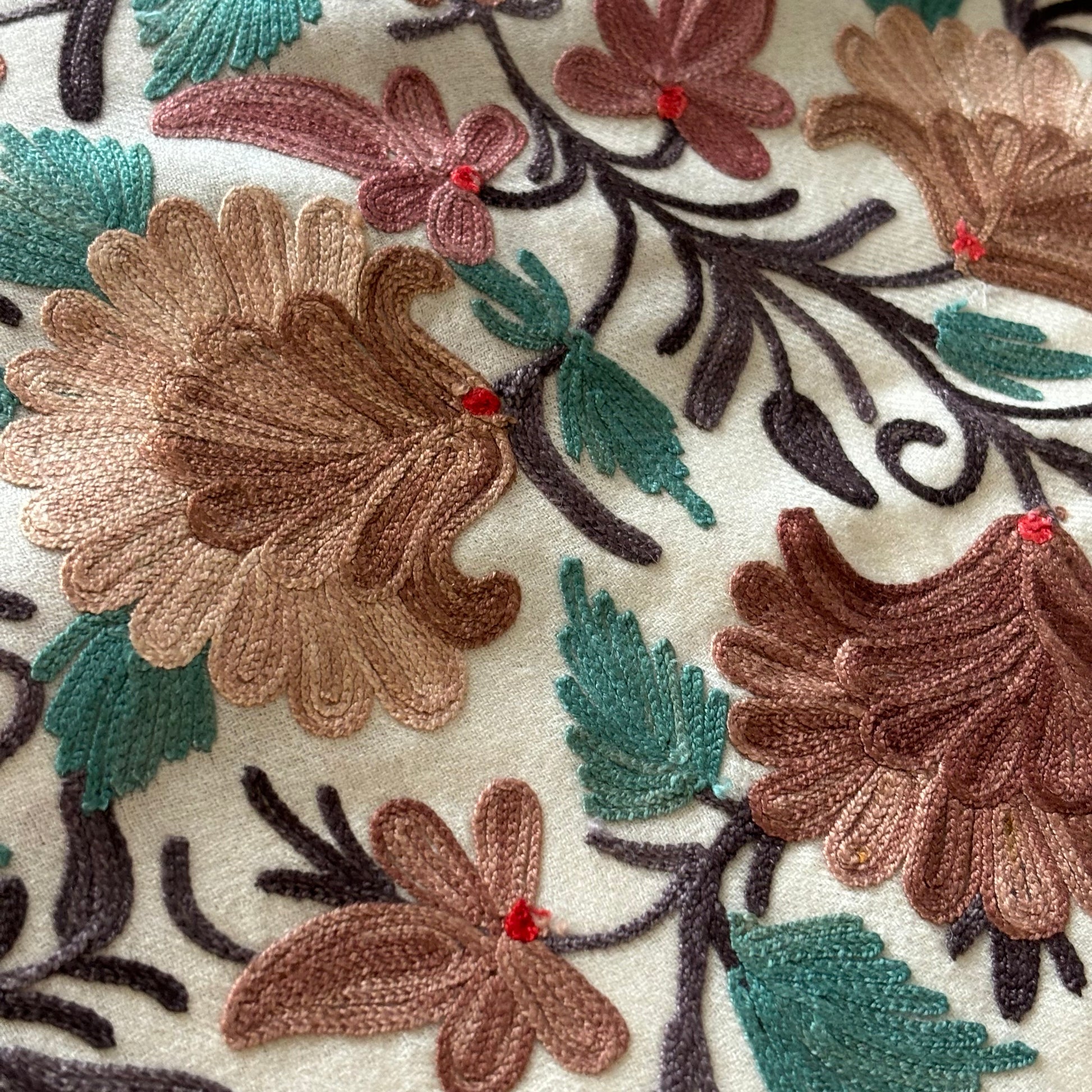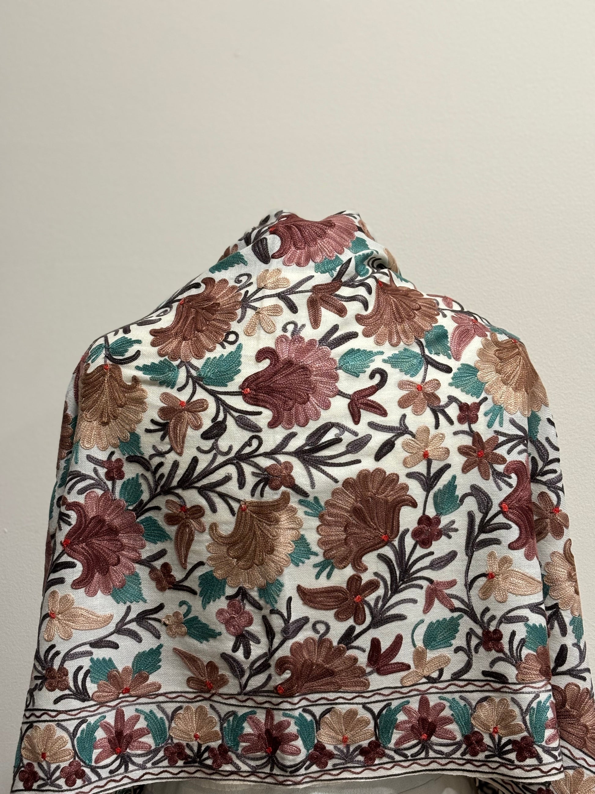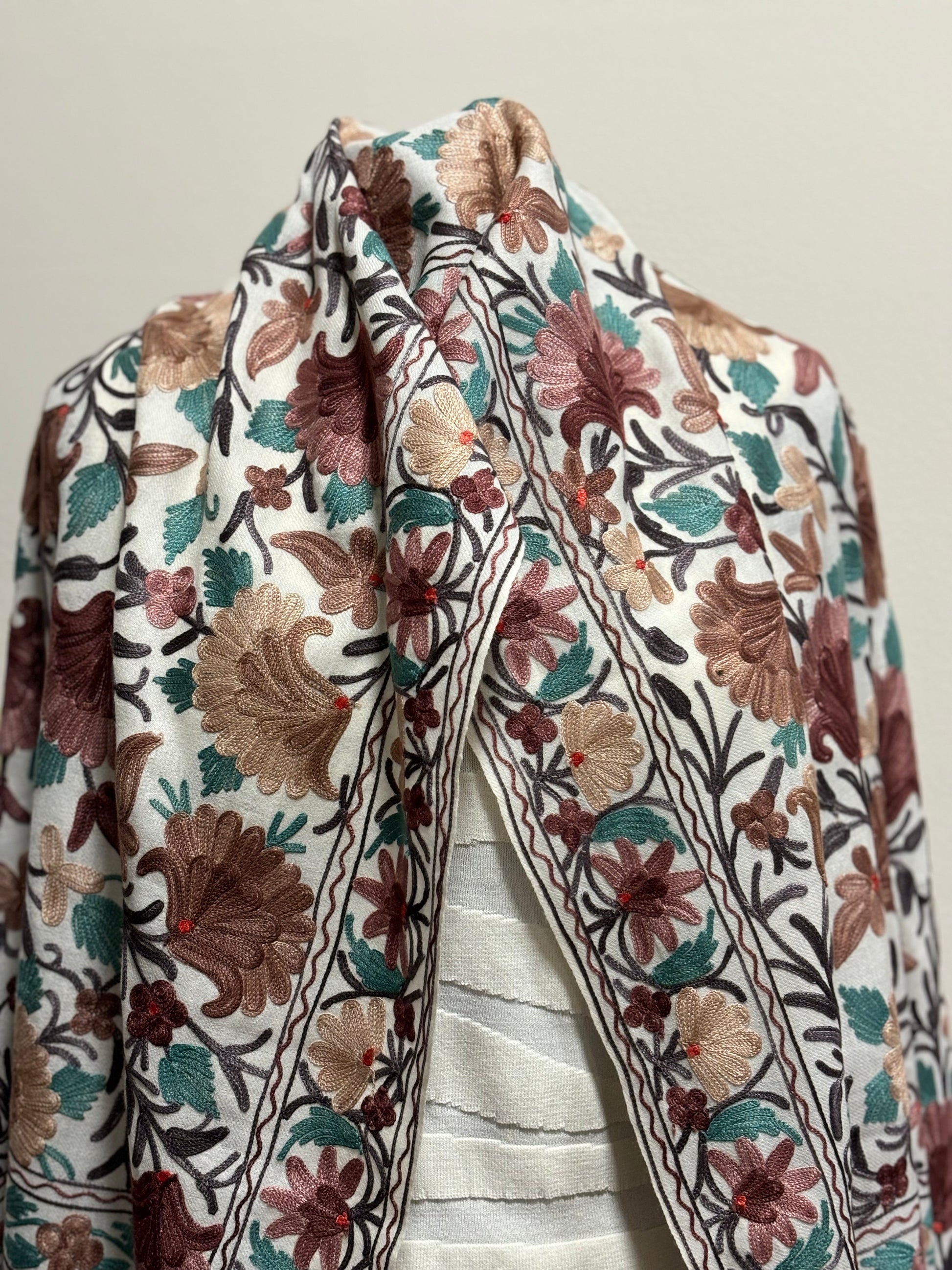 Ivory Color Shawl with Multi Color Aari Embroidery
