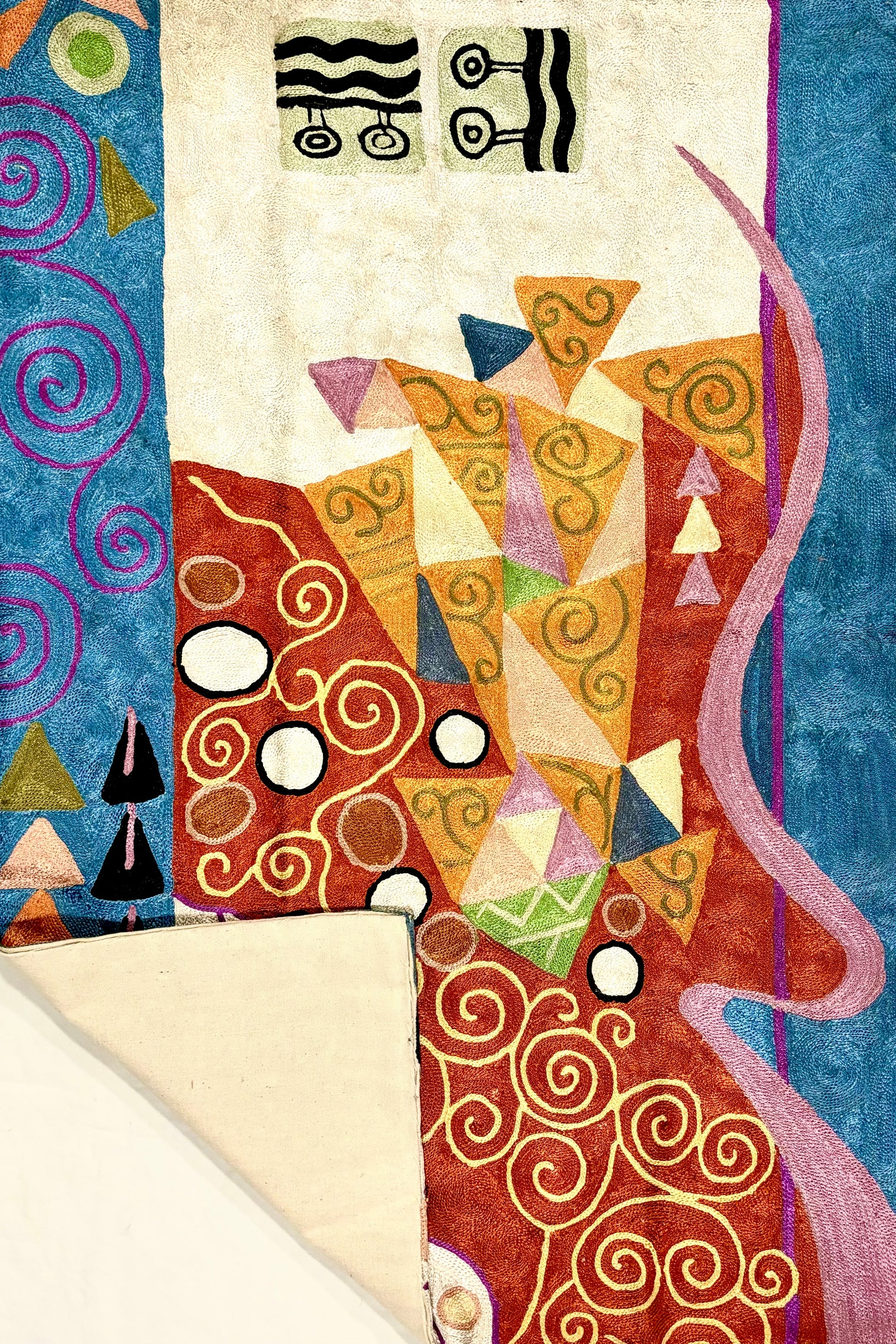 These one of a kind pieces are from the breathtaking valleys of Kashmir, India and the talent of the artisans is out of this world. These tapestries/wall hangings displayed on the wall bring beauty and vibrant color to any room.