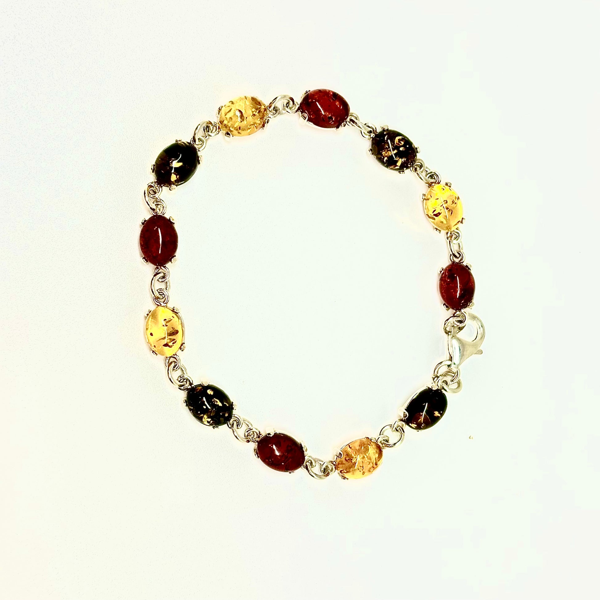 Multi Color Baltic Amber Sterling Silver Bracelet