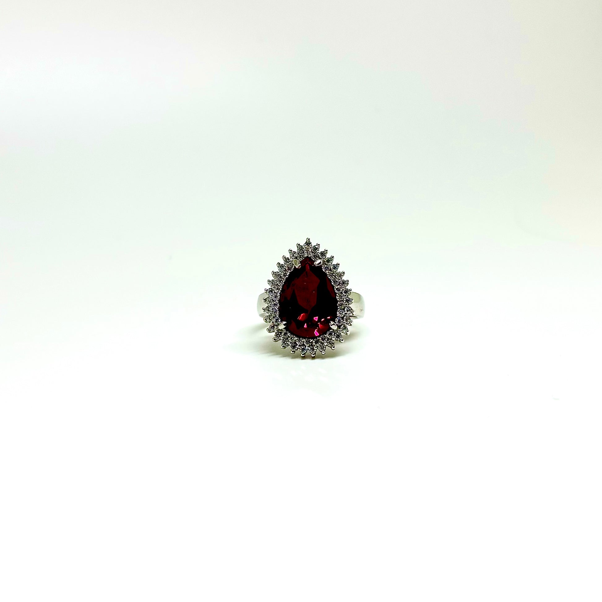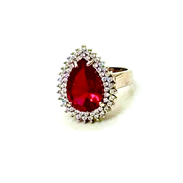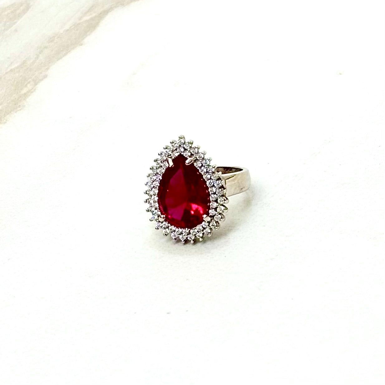 Red and Clear Cubic Zirconia Sterling Silver Ring