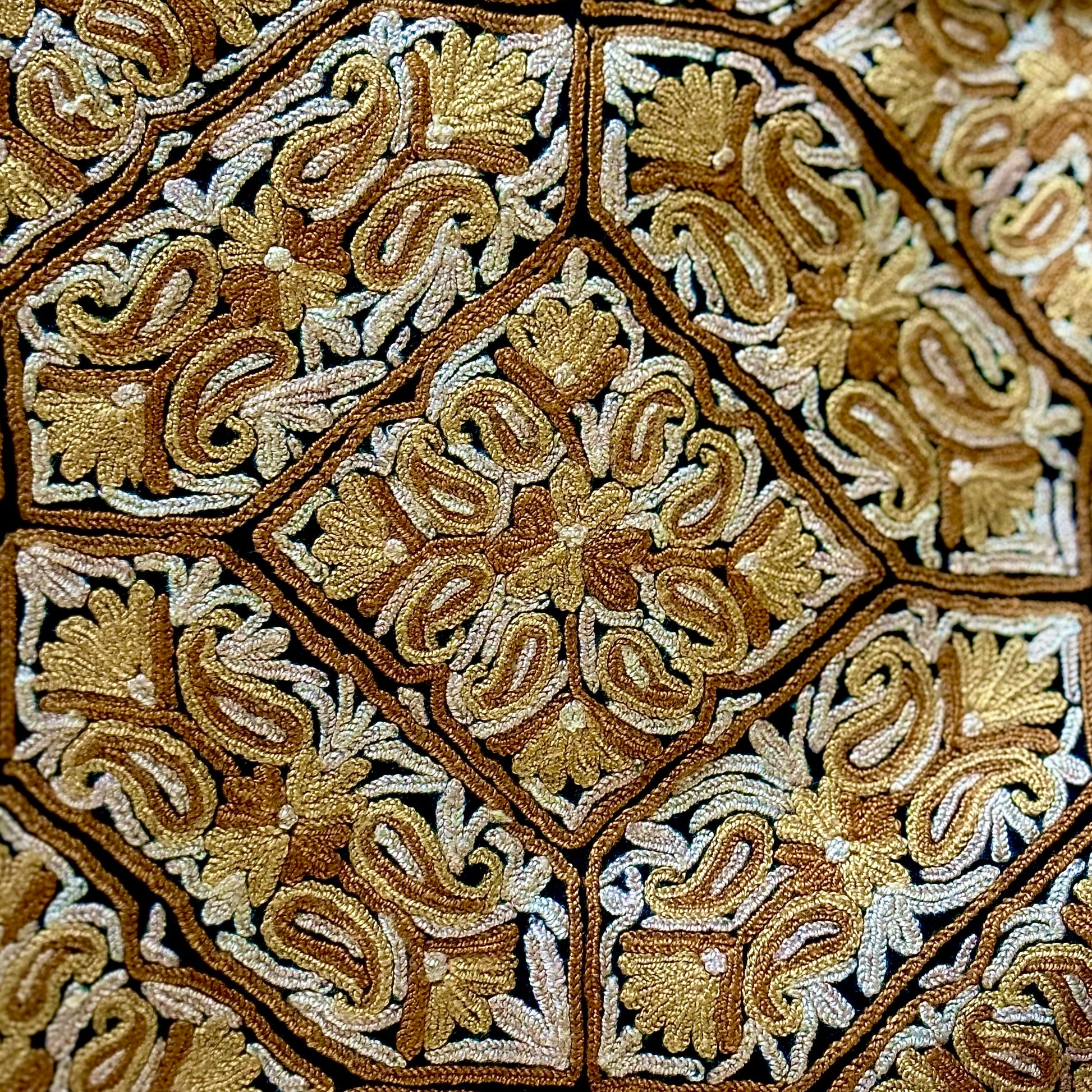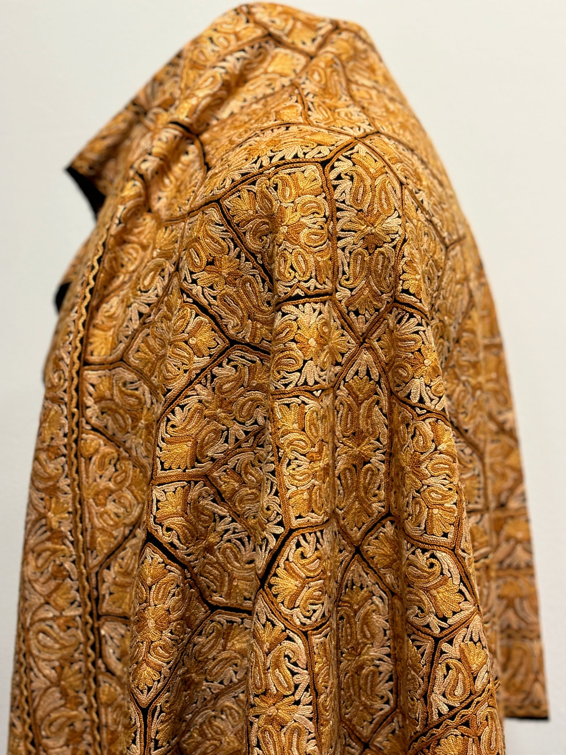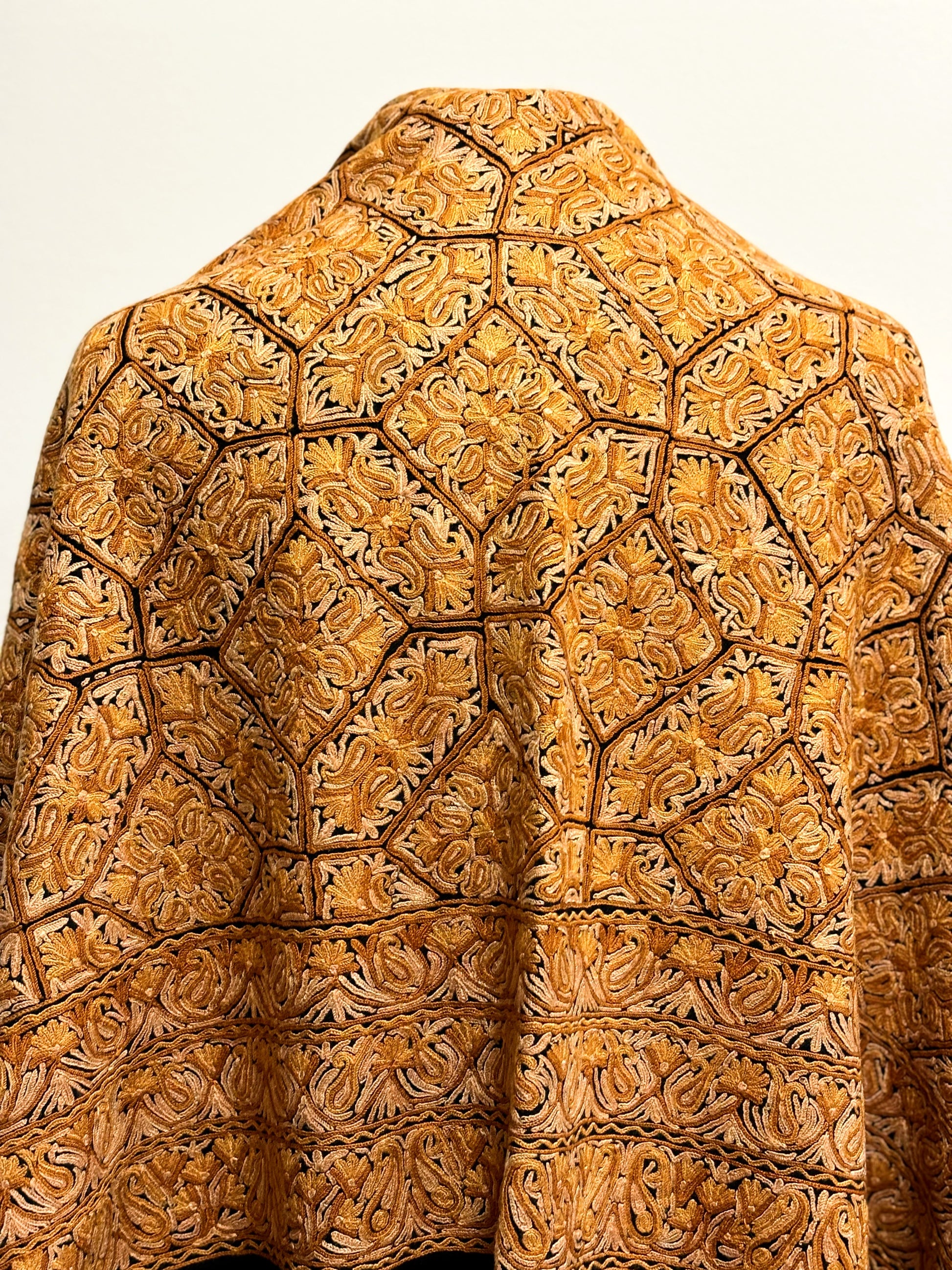 Shawl- Black color Woolen shawl with Yellow Aari embroidery
