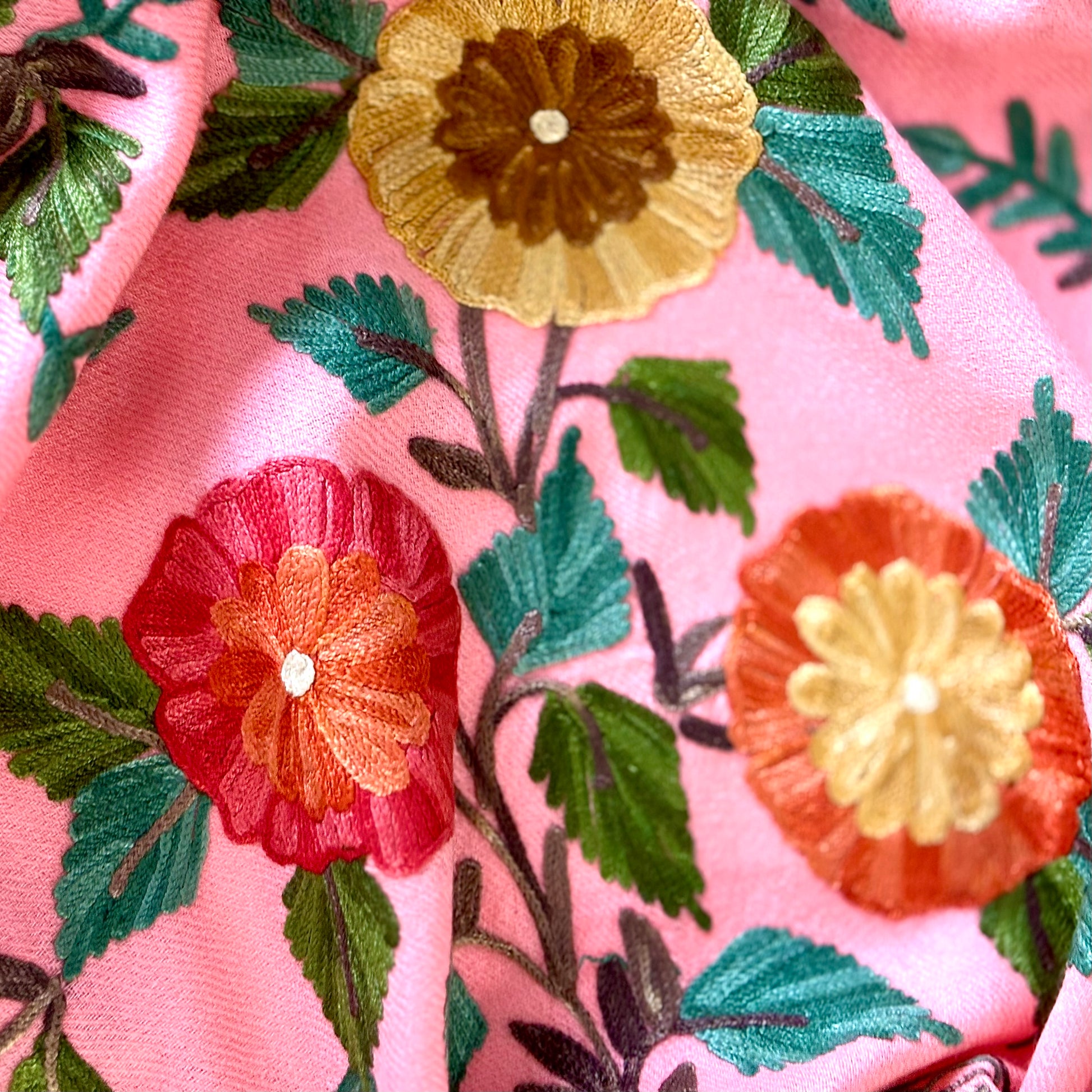 Shawl - Peachy Wool Embroidered Kashmiri Shawl