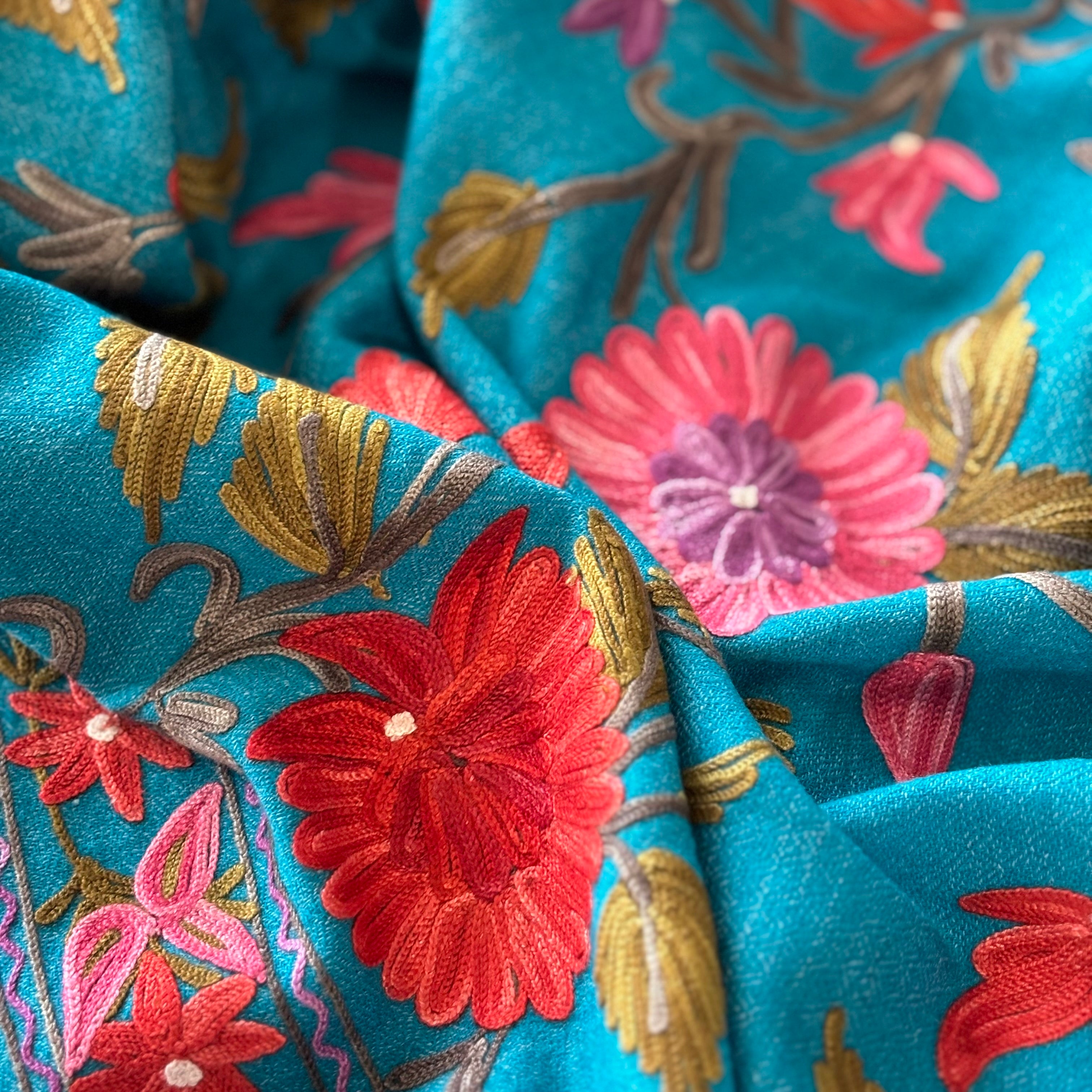 Shawl - Turquoise Dream Wool Embroidered Kashmiri Shawl